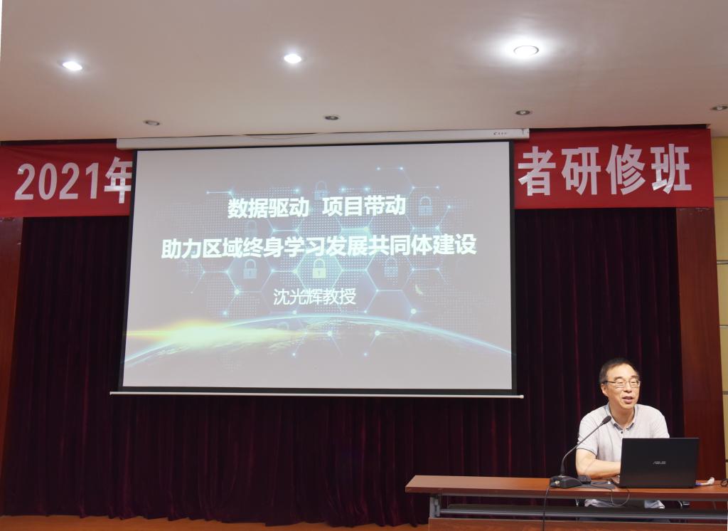 副校长沈光辉对研修班学员表示热烈欢迎,并作了首场讲座,探讨大数据下的福建省终身教育发展,他指出,大数据开启时代重大转型,可以为终身教育变革创新提供全新思维,将促进终身教育形成新模式、新业态、新生态,构建网络化、数字化、个性化、终身化的教育体系,建设“人人皆学、处处能学、时时可学”的学习型社会。