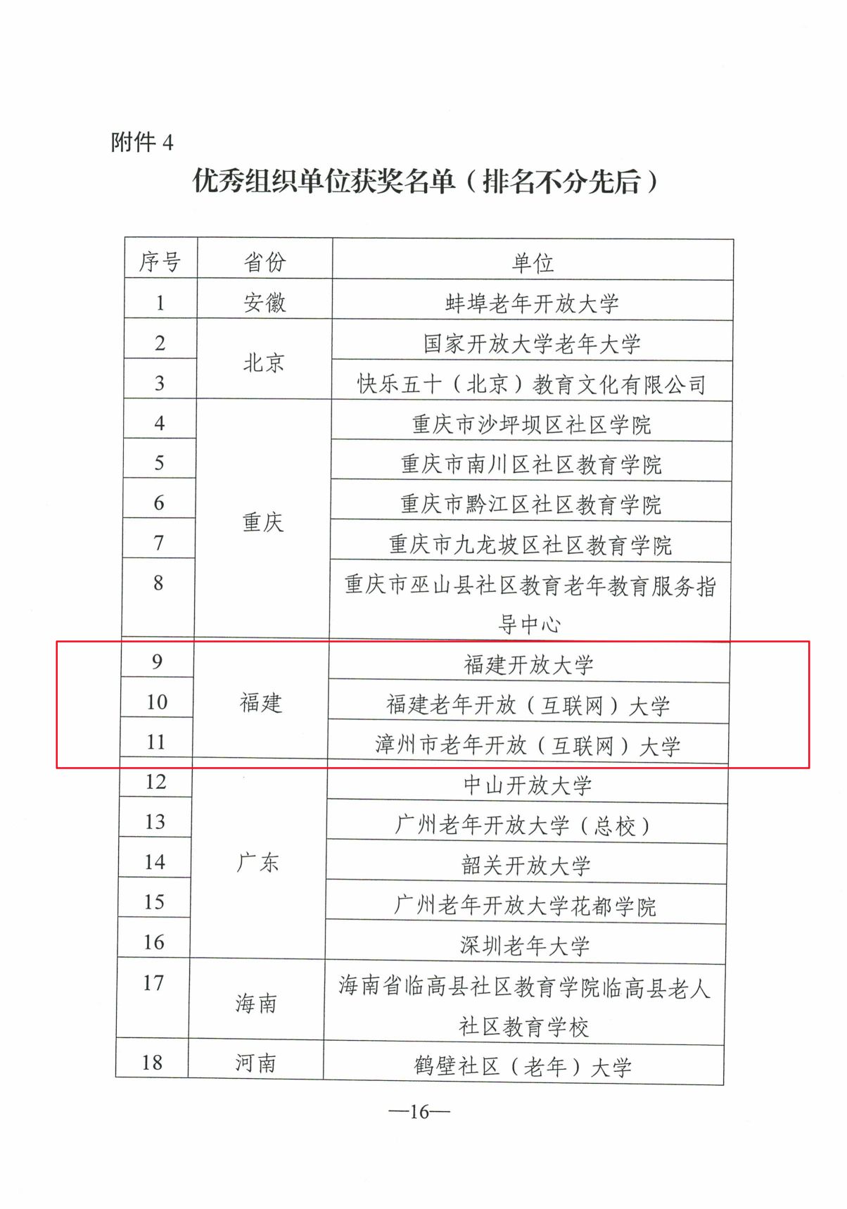 获奖单位:福建省老年开放(互联网)大学新华分校