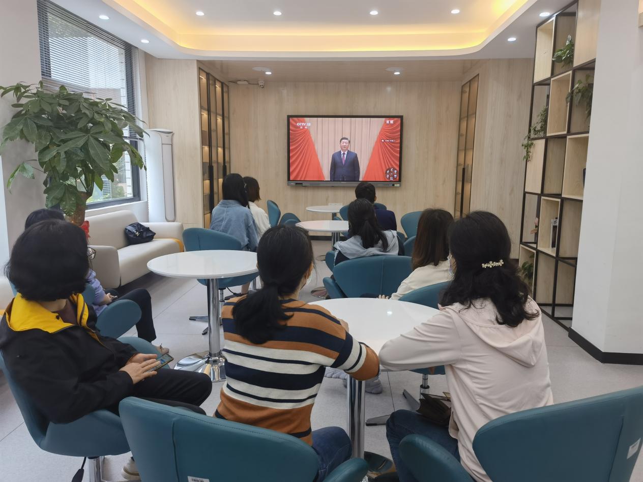 团员学生代表收看大会直播现场