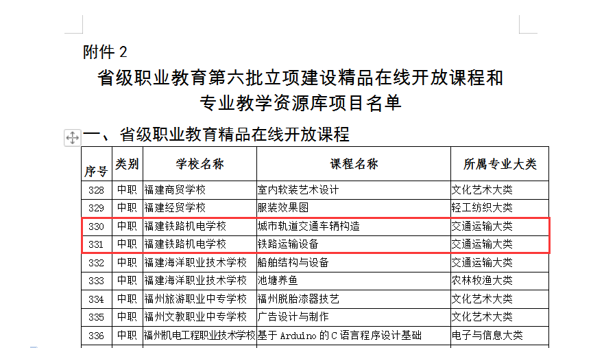 近日,根据福建省教育厅发布《关于公布2022年省级职业教育信息化项目立项建设项目及已立项建设项目验收结果的通知》,职业学院“城市轨道交通车辆构造”“铁路运输设备”两门课程,获第六批省级精品在线开放课程立项。此外,“城市轨道交通运营安全”课程通过省级职业教育精品在线开放课程验收,其在精品课程平台浏览量高达379万次。