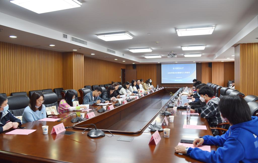 5月14日上午,文经学院组织师生参加学校2022年春季新生开学典礼暨同上“开学第一课”,并召开新生入学教育暨新老生交流座谈会。学院领导、系主任、班主任和新老生代表30余人参加了活动。