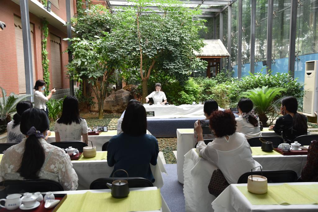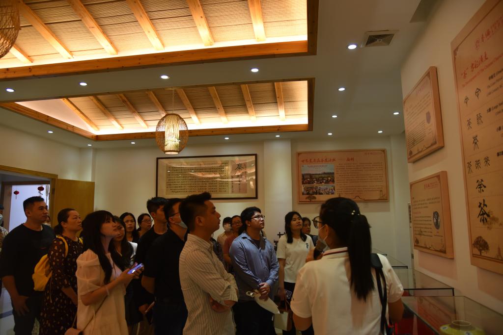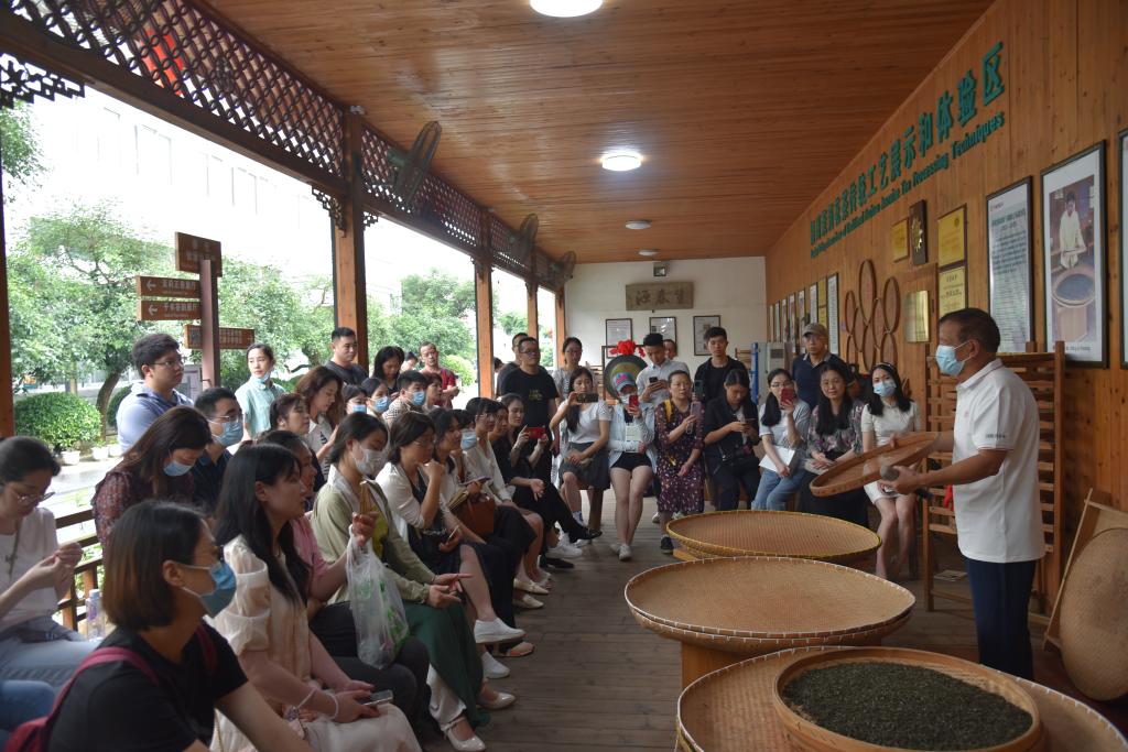 6月16日上午,文经学院茶艺与茶文化专业在福建春伦集团开展校外实践及面授课程。本次活动吸引了茶艺与茶叶营销、茶艺与茶文化专业教师团队和各年级师生近50人参加学习。大家在春伦文化创业产业园主管叶小洁引领下参观了春伦公司茉莉花茶馆,欣赏茉莉花茶茶艺表演。福州市非物质文化遗产项目代表性传承人、福州茉莉花茶传统窨制工艺传承大师张子健在茉莉花茶传统窨制工艺区生动演绎了茉莉花茶手工制作主要流程。福建春伦集团质量管控部经理、国家一级评茶员唐艳现场指导茶专业同学开展茉莉花茶赤金、茉莉花茶白龙珠、创新茶---茉莉普洱多款优质茶叶审评。