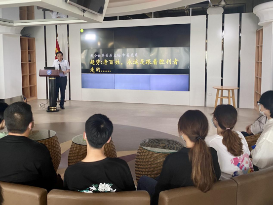 首先,池毅以“中华民族伟大复兴,党是核心”为主题,向大家讲述了中国共产党带领人民群众取得辉煌成就的历程。同时,他指出中华民族伟大复兴是中国共产党的初心使命。随后,池毅从近年来国家发展情况与国际关系出发,以“当今世界关系主轴:中美关系”为主题,鼓励青年学子积极面对新时代的艰巨任务和错综复杂情况,主动思考自我对国家发展的重要意义和价值,坚定理想信念,厚植爱国情怀,努力成为社会事业合格建设者和可靠接班人。