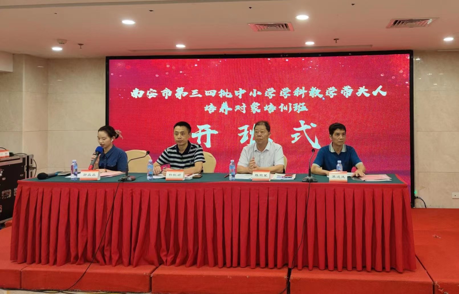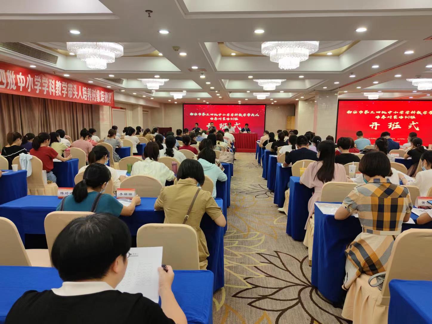 为推进南安市当地基础教育优质均衡发展,主动融入发展大局提供有力的专业支撑和人才保障,7月18日下午,由南安市教师进修学校和福建开放大学联合举办的南安市第三、四批中小学学科教学带头人培养对象培训班在福州市拉开帷幕。福建开放大学培训学院副院长、福建省中小学教师远程培训中心常务副主任杨聪颖,南安市教师进修学校校长陈照星、南安市教师进修学校苏达凤以及南安市中小学学科教学带头人,共计137人出席了开班仪式,仪式由福建省中小学教师远程培训中心郭晶晶主持。