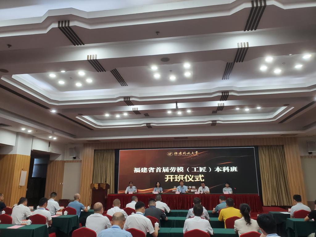 在致辞中,张海代表学院向福建省首届劳模(工匠)本科班的到来表示欢迎,简要介绍了学院办学特色及办学成效。他表示,作为福建省首届劳模(工匠)本科班的承办学院,学院将结合专业特色、特点,聘请该专业领域的专家教授,开拓学生知识视野,努力营造浓厚学术氛围;学院教学及学生支持服务团队也将为劳模学员提供高质量的学习支持服务,确保培训工作顺利开展。他号召全体学员,珍惜学习机会,珍惜师生情谊,勤学好问,刻苦钻研,养成“向上向善”的班风班貌;发扬劳模精神、劳动精神、工匠精神,互相带动,互相提醒,互相帮助,遵守培训学习纪律,展现劳模风采。