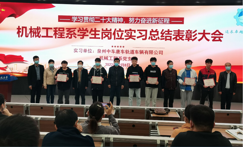 习近平总书记指出,在全面建设社会主义现代化国家新征程中,职业教育前途广阔、大有可为。在职业学院党总支的领导部署下,机械工程系党支部组织系部2020级学生共61人分两批到泉州中车唐车轨道车辆有限公司参与为期6个月的实习,以此为依托创建党建工作品牌,实现党建工作与教育教学、校企合作、家校联系、学生实习就业深度融合,点燃系部事业发展的新引擎。12月1日,第一批岗位实习学生结束实习任务安全有序返校。