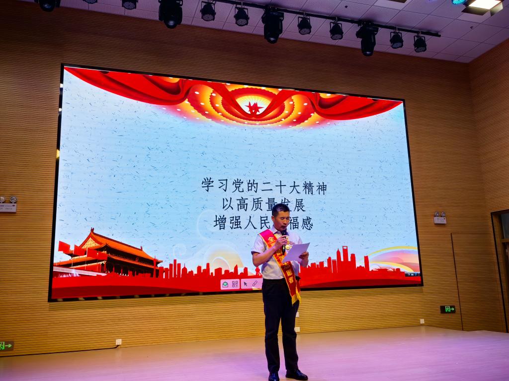 活动还邀请了福建省教育系统学习贯彻党的二十大精神新时代青年学生宣讲团成员、“全国最美志愿者钱宏伟工作室”负责人、我校2022年秋季社会工作专业劳模(工匠)本科班班长钱宏伟,为象峰学校小学部教师作《以高质量发展增强人民幸福感》的专题宣讲。钱宏伟详细阐释了高质量发展的力量源泉,分享了作为习近平新时代中国特色社会主义思想“宣传员”的体会和29年来开展志愿服务的初心和感悟,语言朴实、感情真挚,令人感动。