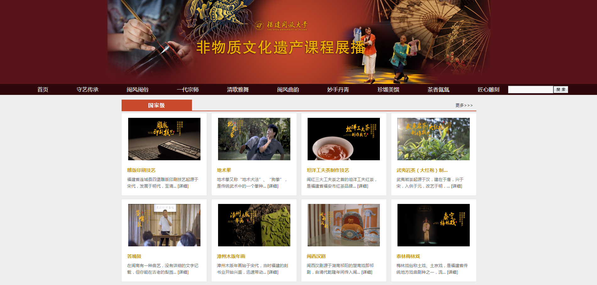 据悉,自2020年起学校组织发动全省社区大学、社区学院、老年开放(互联网)大学等办学机构,面向城乡社区居民开展“传承中华优秀传统文化,推进非遗‘双百’进社区”终身教育专题活动。学校围绕我省非物质文化遗产特色项目开展优秀网络课程制作,邀请国家级、省级非物质文化遗产传承人参与课程拍摄,全省各级办学单位和社区教育机构也积极参与,建设当地特色非物质文化遗产网络课程。截至日前,全省共建设非遗系列课程130余门,并在福建开放大学官网和福建终身学习在线开设非物质文化遗产展播专栏,展播制作完成的非遗课程,城乡居民登录平台即可观看学习。此举不仅弘扬了中华优秀传统文化、倡导了全民终身学习理念,更有效提升了城乡居民的非遗保护和传承意识。
