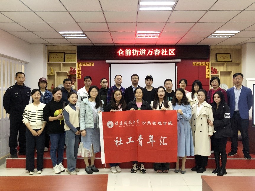 为深入学习党的二十大关于国家治理体系和治理能力现代化的重要论述,积极响应团中央“百万大学生进社区”的号召,切实提升实践育人质量,将专业知识融入基层社会治理中,近日,公共管理学院“社工青年汇”学生社团走进福州市仓山区仓前街道万春社区开展实践研学活动。
