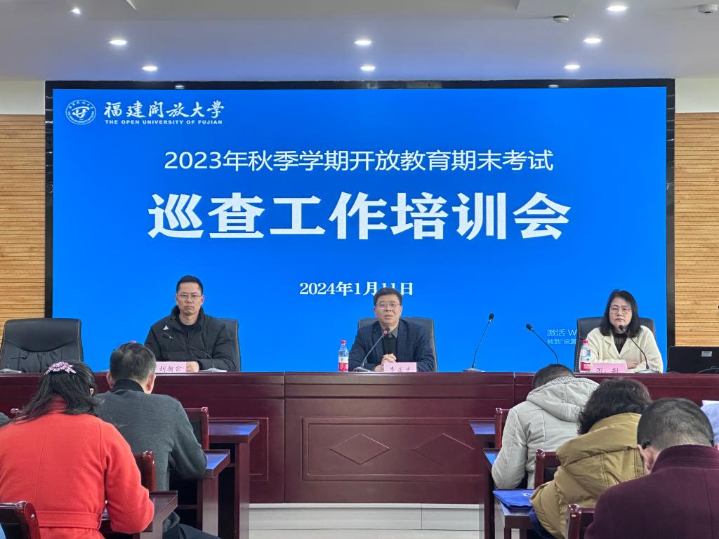 2024年1月11日下午,福建开放大学召开2023年秋季学期期末考试巡查工作培训会。副校长李正光出席会议并讲话。教务处处长孔敏主持会议。