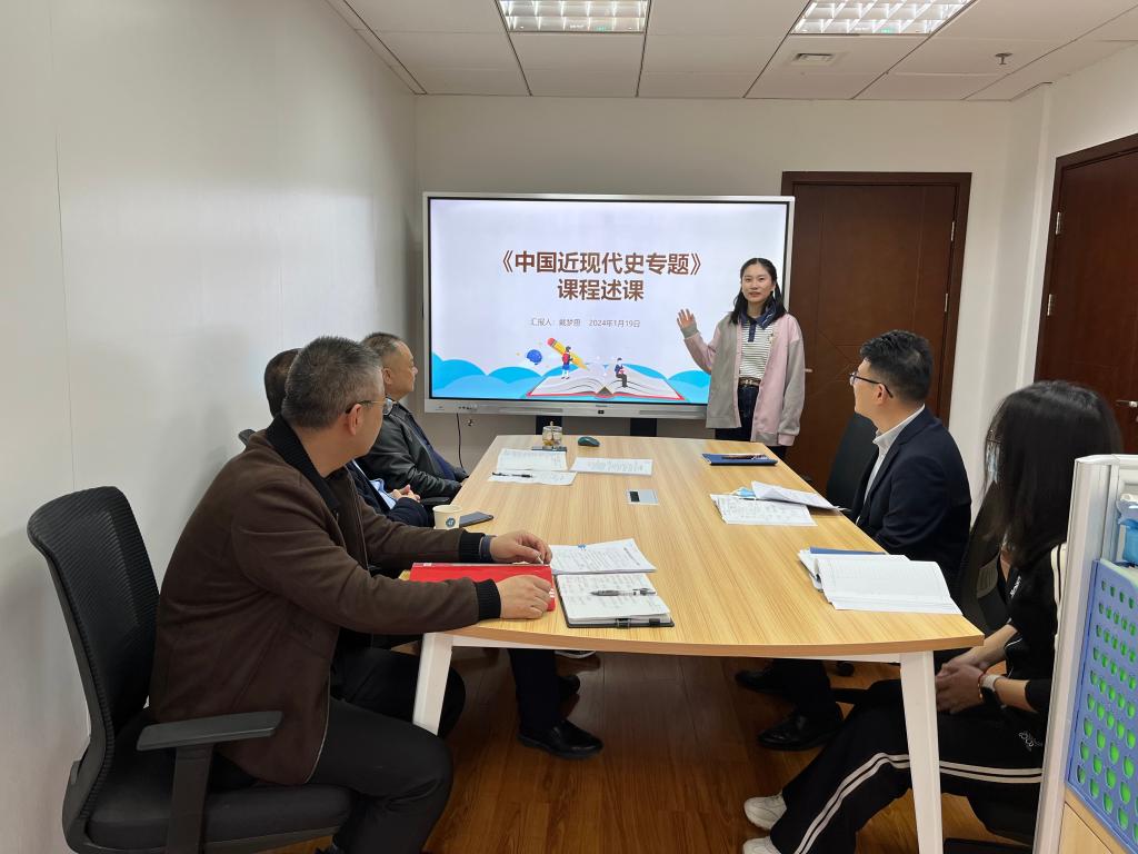 为进一步规范教学过程,提升教学质量,1月19日,马克思主义学院开展2023年秋季学期开放教育课程责任教师述课活动。学院院长罗向阳、副院长裴常山、学院兼职教授范五三参加评课,学院教职工到场观摩与学习。