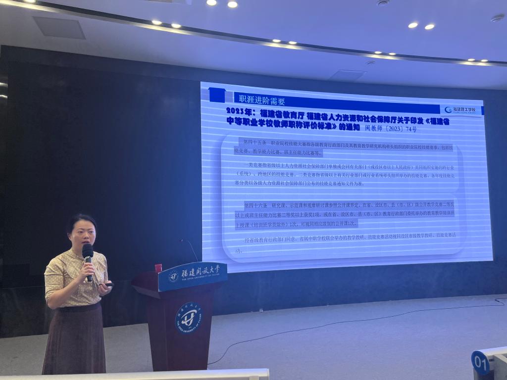卢珊老师是省级课程思政示范课程、教学名师和团队领衔人,首批省级中等职业学校名班主任工作室培育项目负责人,曾获2022年全国职业院校技能大赛中等职业学校班主任能力比赛二等奖、福建省中等职业学校班主任能力比赛一等奖。她凭借建班育人的深厚功底和丰富经验,从参赛的意义、赛制赛项解析、备赛建议三个方面深刻剖析了如何通过参赛推动班主任的专业化成长。卢珊老师语言生动,逻辑清晰,案例丰富,用个人的参赛实践为学院班主任提供了一份极具价值的参赛指南。
