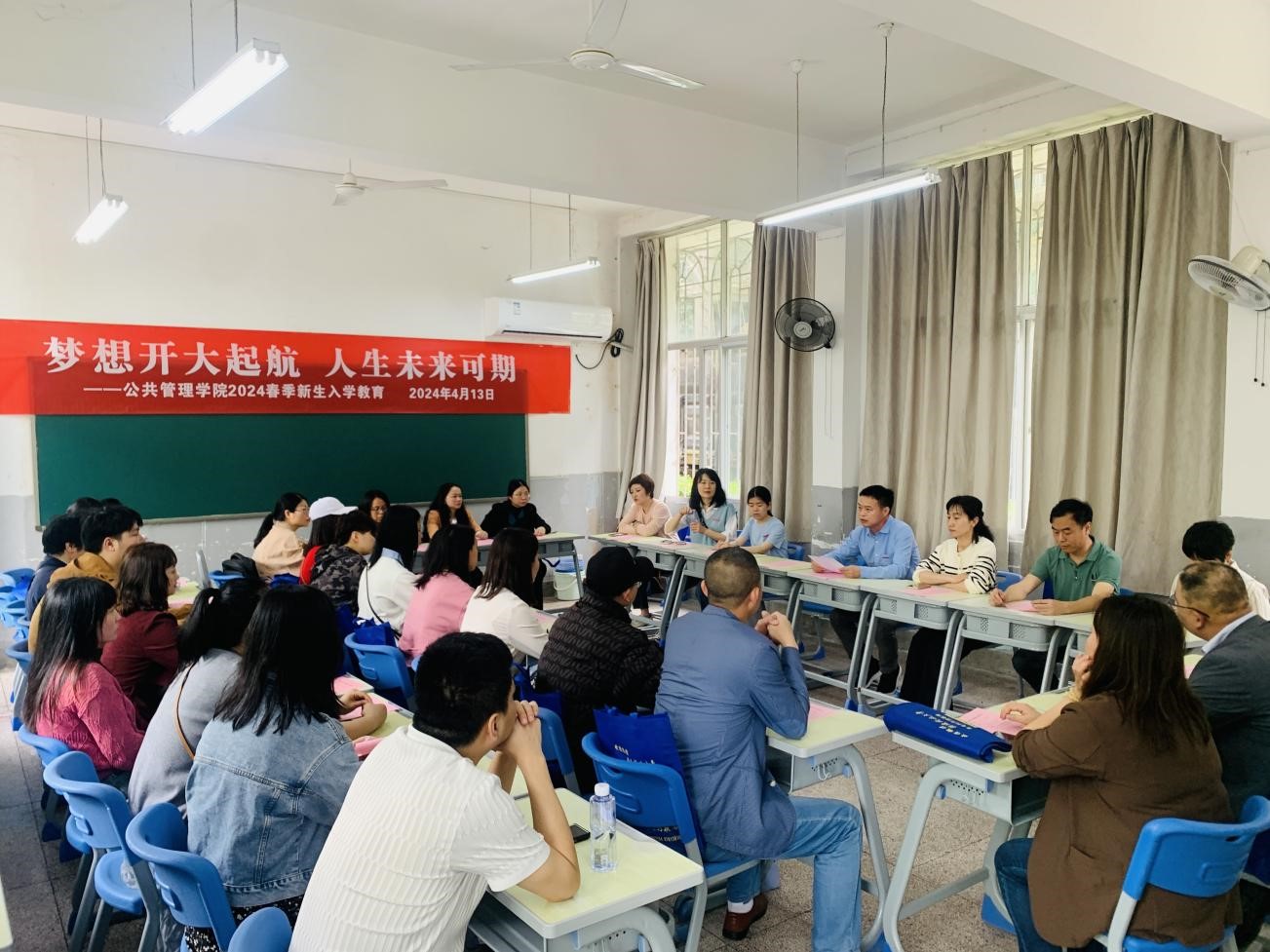 在美丽的四月,新一批莘莘学子踏入开放大学校园,开启求学筑梦新征程。为帮助新生解锁“新开大人”角色,快速适应学习生活, 4月13日上午,在参加学校统一举办的2024年春季新生开学典礼暨同上“开学第一课”之后,公共管理学院以“梦想开大起航,人生未来可期”为主题,开展2024年春季新生入学教育。