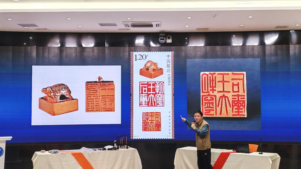 在书法教学实践环节,福建省书法家协会会员、福建省艺术收藏协会秘书长王德强为师生作主题为“秦汉印章的临摹与赏析”的精彩讲座。王德强凭借其深厚的专业知识和丰富的教学经验,从秦汉印章的历史渊源讲起,详细阐述了秦汉官印、私印等不同类型印章的风格特点,让师生们对秦汉印章的发展脉络有了清晰的认识。他还现场展示介绍了篆刻工具以及临摹的技巧与方法,强调了临摹过程中的注意事项。在赏析部分,王德强结合经典作品,深入剖析其艺术价值与文化内涵,引导师生从多个角度欣赏秦汉印章之美,提升了他们的审美水平与艺术鉴赏能力。
