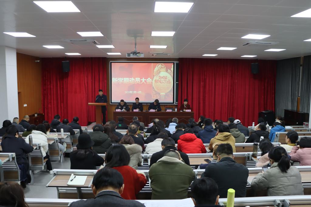 为更好总结上学年发展情况,统筹安排新学年各项工作,2月14日上午,职业学院举行2025年新学期动员大会,全体教职工到场参加。会议由党总支书记吴宁晖主持。