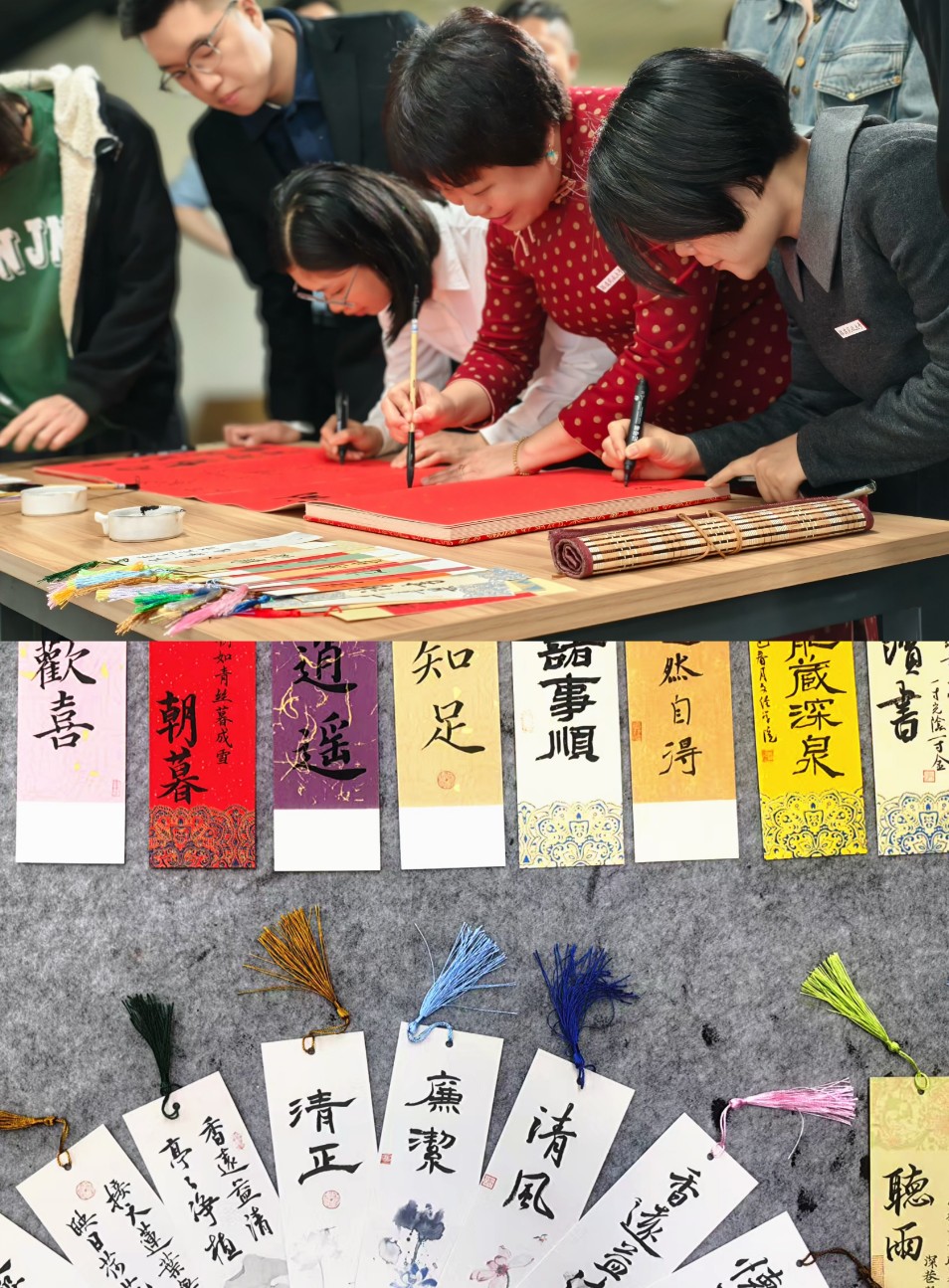 在第三十个“世界读书日”到来之际,为深入学习宣传贯彻党的二十届三中全会精神,面向全体学生开展好法制宣传教育,学院班子成员为新生代表赠送了精心挑选的书籍,勉励大家在知识的海洋中不断探索。新同学们在签到册上郑重签下自己的名字,留下了在文经学院的第一笔印记,并领取一张由学院书法学专业师生手写的书签。书签上或是励志格言,或是廉洁警句,承载着学院对新同学的美好祝福,希望能激励大家开启一段充实而美好的学习征程。
