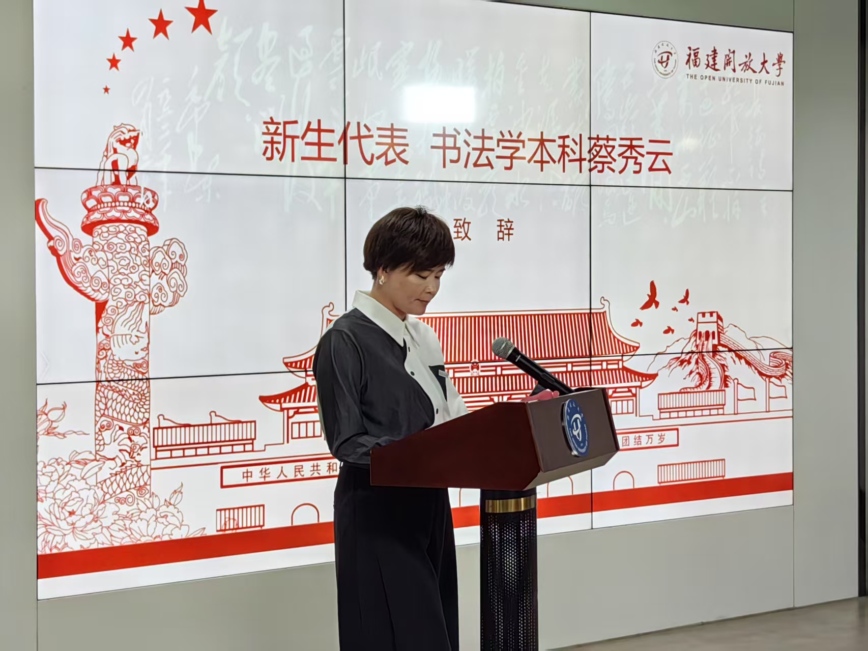 财经与管理系主任陈小梅、中文与法律系主任黄姗进行了专业介绍,阐述了学院各专业的特色、课程设置、发展前景等内容,让新生们对自己所学专业有了更深入的了解。王圣亚老师开展了新生“一网一平台”使用培训,帮助同学们进一步了解开放教育的学习模式和特点,增强信心,明确方向,为今后的学习奠定良好的基础。新生代表、书法学本科蔡秀云同学分享了自己在开放大学的求学经历以及对未来学习生活的展望,她鼓励同学们珍惜在开放大学的学习时光,努力汲取知识的养分,以榜样为引领,为实现自己的梦想而努力奋斗。