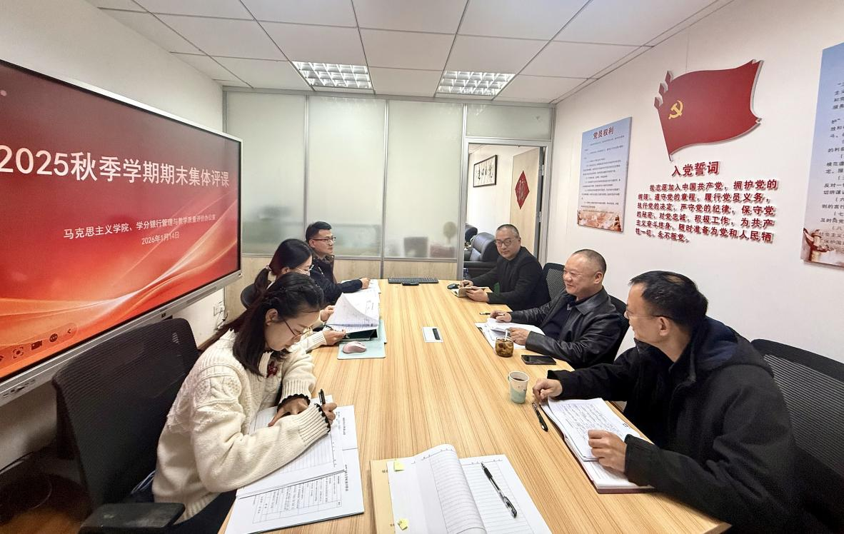 为持续深化思政课教学改革,着力提升课堂育人实效,1月14日下午,马克思主义学院组织开展2025年秋季学期期末集体评课活动。学院全体教职工、学分银行管理与教学质量评价办公室副主任曾台刚参加活动。