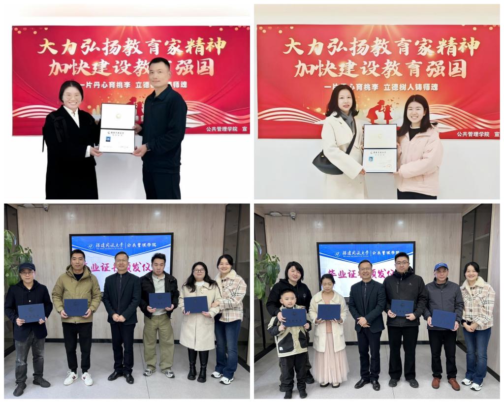 为扎实做好2026年春季毕业生服务工作,公共管理学院班主任团队提前谋划、精准发力,细化各环节流程,全力保障符合条件的学生顺利毕业,本批次共有464名学生圆满完成学业。为赋予毕业生满满的仪式感,学院创新推出“校园集中颁证+企业上门送证”双线模式,以庄重又暖心的方式为同学们的求学之旅画上圆满句点,护航他们奔赴人生新征程。