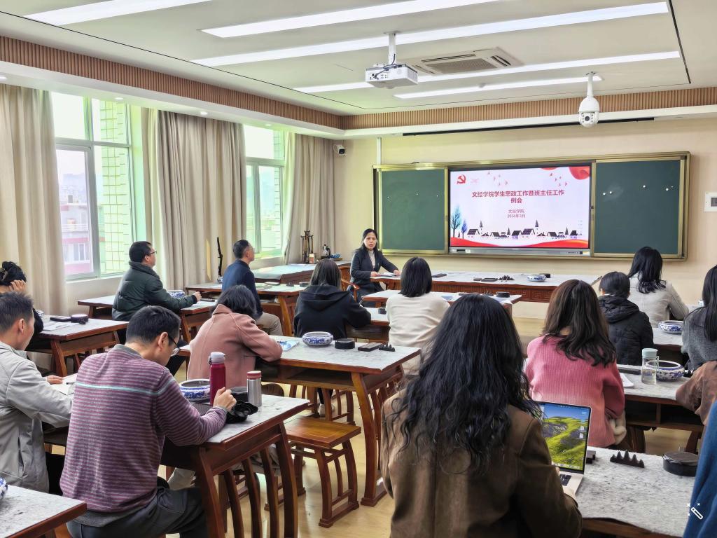 3月12日下午,为深入贯彻落实立德树人根本任务,抓好新学期学生学习支持服务重点工作,文经学院召开新学期首次学生思政工作暨班主任工作例会,学院班子成员、各科系负责人和全体专兼职班主任参加。