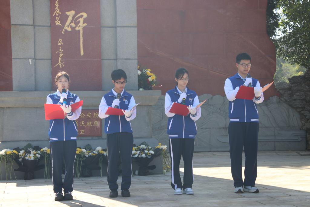 祭扫仪式在肃穆庄重的氛围中开始。师生代表手执党旗、团旗、队旗,步伐整齐列队入场,全体人员肃立注目。随后,师生与党员代表依次向英烈敬献花束,肃立默哀,深情追思先烈以身许国的不朽功勋。仪式中,附属中学鳝溪校区少先队员和职业学院团员代表分别朗诵了《中华少年》和《不朽》,他们清澈嘹亮的声音,传递着新时代青少年传承英烈精神、勇担时代使命的赤诚和决心。