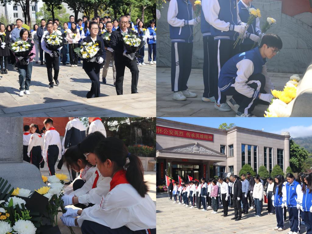苍松伴英烈,清明寄哀思。为深切缅怀公安英烈,传承红色基因,扎实推进大中小学思政课一体化建设,4月1日下午,福建开放大学马克思主义学院、共青团福建开放大学委员会、职业学院,携手中共福州市晋安区委宣传部(文明办)、附属中学鳝溪校区、双溪社区,齐聚福建公安英烈纪念园,共同开展“缅怀革命先烈 传承红色基因”主题祭扫活动,80余人共上一堂特殊而深刻的“思政课”。
