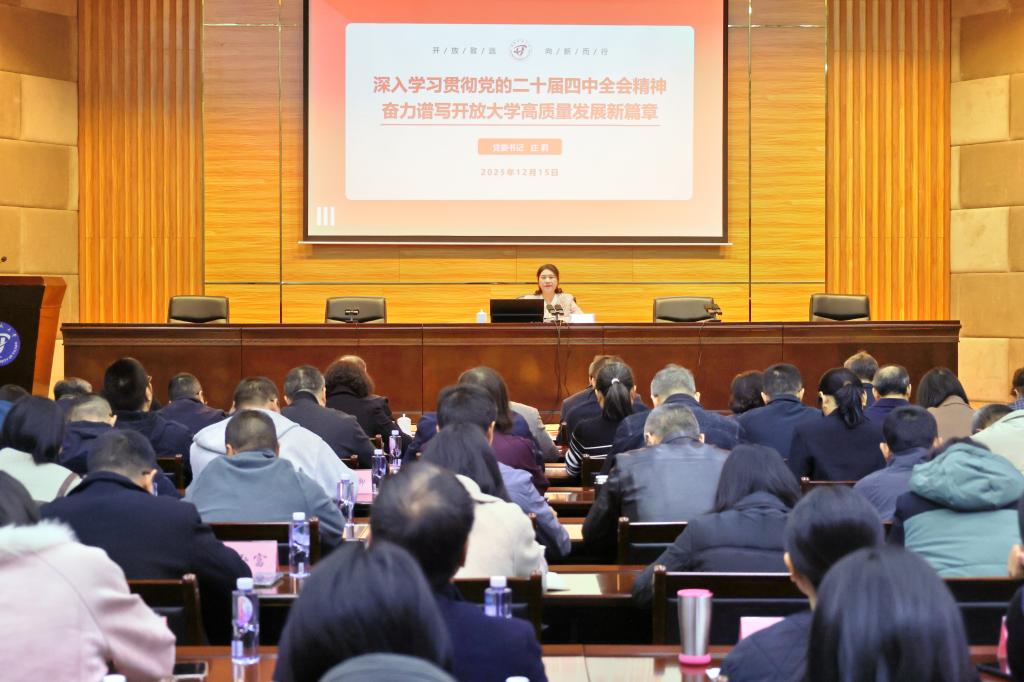 随后,庄莉以《深入学习贯彻党的二十届四中全会精神 奋力谱写开放大学高质量发展新篇章》为题,围绕“深学细悟强思想”“融会贯通明方向”“守正创新促发展”“笃行实干抓落实”四个方面作专题宣讲。