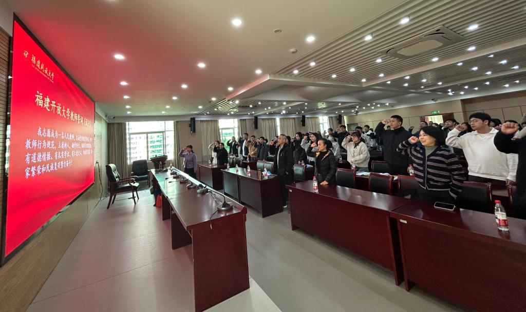 培训期间,组织新教师们在校史馆、“牢记嘱托 感恩奋进”主题馆开展校史现场教学。国家开放大学“师德标兵”王小红老师带领全体新教师面对《福建开放大学教师誓词》,庄严宣誓。铮铮誓言既是教育薪火传递的见证,也是对教育初心的坚守,更是对育人使命的承诺。