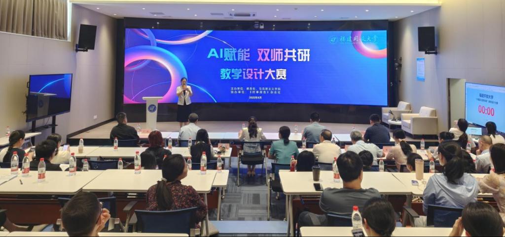 为着力构建学校“大思政”工作格局,推动思政课程与课程思政同向同行,6月6日,学校举办“AI赋能,双师共研”教学设计大赛。大赛以团队合作的形式开展,每支队伍由一名专业课教师和一名思政课教师组成,全省课程思政教学研究分中心共派出8支代表队参加。校党委书记庄莉、副校长李正光,有关部门、学院负责人及教师代表到场观摩。